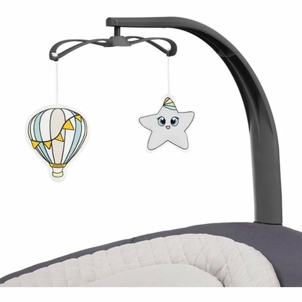 - La balancelle est fournie avec deux jouets d’éveil, une télécommande et un câble USB (1,2m)
