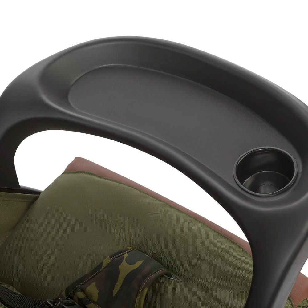 Elle est équipée d’un plateau avec porte gobelet pour le goûter de votre enfant. La poussette comprend également un plateau démontable avec deux porte gobelets pour les parents.